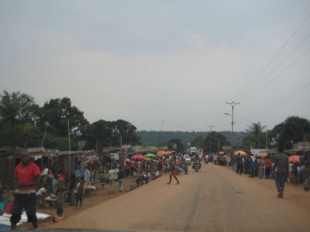Bridge over the Goat River. On the other side many merchants from the villages round about. |